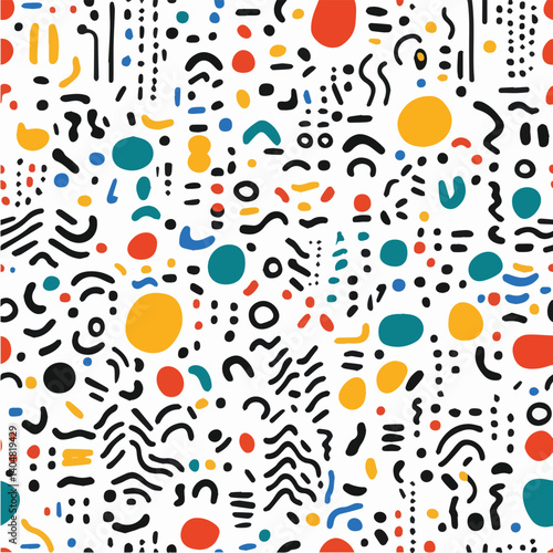 Illustration of Memphis geometric seamless pattern doodle design