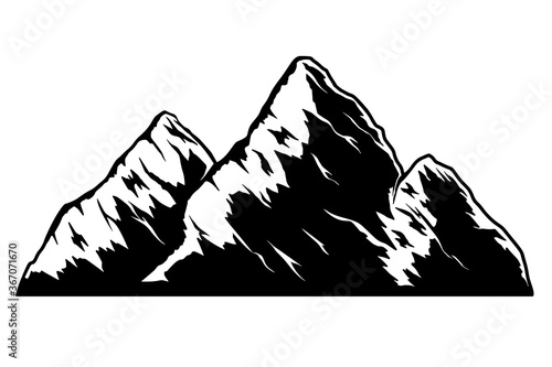 Illustration of mountain in engraving style. Design element for logo, emblem, sign, poster, card, banner.