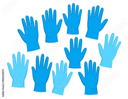 Illustration of multiple blue medical gloves arranged randomly