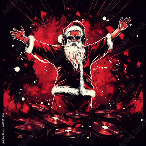 present, sticker, retro, invitation, card, seasonal, season, postcard, symbol, beard, elegance, fun, dance, party, waving, racked, sunglasses, cool, art, goggles, comic, poster, colourful, full, joy, character, decoration, cheerful, creative, december, design, greeting, happy, festive, element, gift, red, year, holiday, merry, christmas, new, celebration, santa, claus, illustration, winter, cartoon