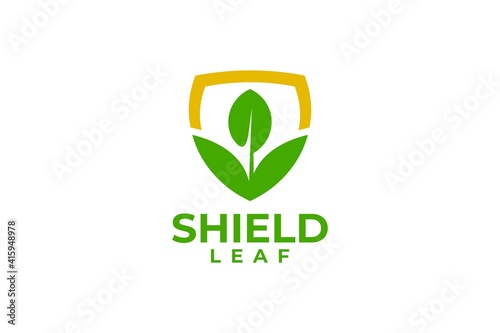 illustration of shield and leaf. nature logo vector.