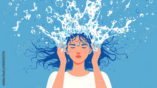 woman, head, splash, water, refreshing, relaxation, spa, wellness, beauty, hydrotherapy, hydratation, skincare, meditation, mindfulness, calmness, serenity, calmness, cleansing, rejuvenation, well-being, peaceful, feminine