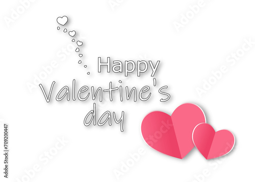 Illustration. Transparent PNG. The inscription Happy Valentine's Day isolated on a transparent background and two pink origami hearts. Valentine's day celebration concept.