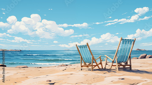 illustration, vectorial, vector, beach, south, france, italy, mediterranean sea, beach chair, parasol, blue skies, blue, sea, ocean, water, sand, vacation, travel, sun, sunny, july, summer, relax, rest, calm, chair, heaven, nature, coast, landscape, beach chair, heaven, leisure, tropical, island, tour tourism, city, town, mediterranean, view, europa, panorama, greece, shore, montenegro, port