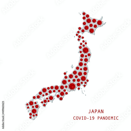 Illustrations concept COVID-19 pandemic in Japan , infection spread around Japan country map