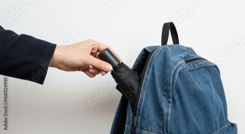 bag, hand, object, umbrella, season, rain, preparation, forecast, weather forecast, take out, enclosed, rainy season