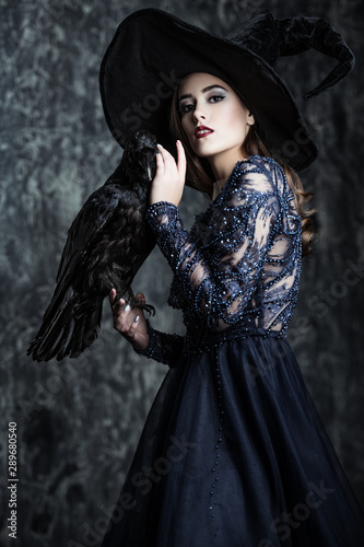 halloween, sorcerer, costume, carnival, party, dress, elegant, style, stylish, hat, girl, lady, woman, female, model, indoor, portrait, background, studio, holiday, evil, evening, celebrate, celebration, hair, dark, feast, festival, festivity, fete, festive, day, spell, black magic, enchantment, charme, magician, beautiful, fascination, beauty, confident, raven