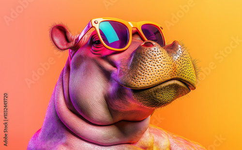image of a colourful hippopotamus with sunglasses