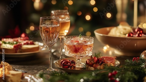 Imagine a festive holiday feast, where traditional dishes and celebratory drinks bring warmth and joy.
