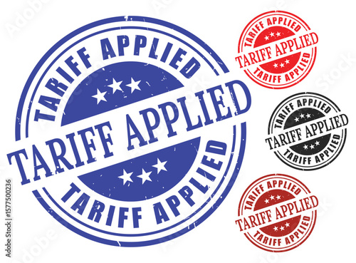 tariff, applied, tax, duty, import, export, regulation, trade, commerce, international, business, economy, finance, government, policy, law, legal, custom, levy, charge, fee, price, cost, global, market, restricted, control, sanction, mark, signs, symbol, icon, stamp, rubber, grunge, vintage, retro, distressed, textured, circle, blue, red, black, brown, vector, set