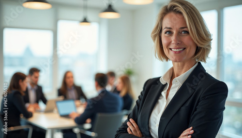 office, meeting, room, portrait, businesswoman, middle-aged, formal, attire, professionalism, confidence, background, employee, blur, modern, decor, sophisticated, atmosphere, authoritative, polished, appearance, collaborative, work, environment, woman, business, people, smiling, smile, person, executive, beauty, corporate, suit, manager, success, sitting, professional, blond, 1, student, working, laptop, team, men at work, businessperson, group, businessman, standing, computer