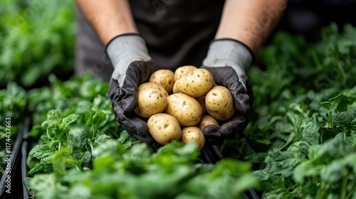 farmer, greenhouse, potato, harvest, vegetable, agriculture, organic, dirtied, planting, crop, fresh, produce, sustainable, gardening, bio, food, farm, nature, growth, rural, landscape, community, labor, green, environmentally friendly, freshness, cultivation, generating, nourishment, heirloom, diversity, market, seasonal, vitality, hand, bounty, colours, tool, edible, local, farm work, men at work, harvesting, horticulture