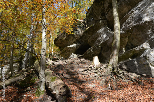 forest, log, autumn, tree, yellow, hiking, stone, fallen tree, park, wood, rock, tree trunk, rocky, environment, boulder, foliage, tour tourism, orange, hike, leaf, mountain, nature, beautiful, landscape, green, scenic, creek, background, natural, scenery, rock, leaf, outdoors, wilderness, colourful, scene, travel, sunny, no people, season, timberland, wild, wood