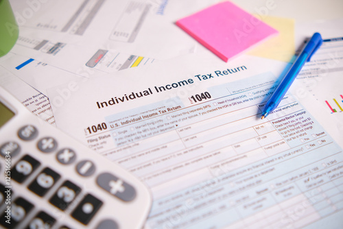 Income tax return 1040 form close up