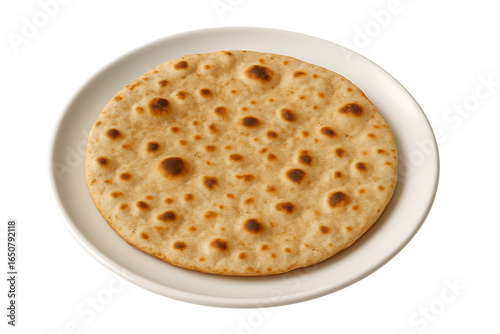 Indian chapati or roti on ceramic plate top view isolated on transparent background