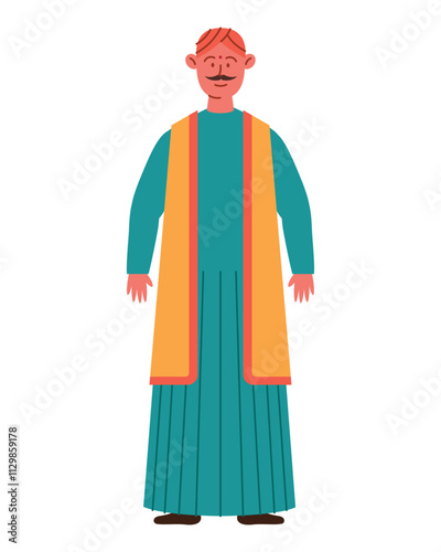 indian, man, indian culture, clothing, full-length, adult, asian, male, india, guy, ethnicity, standing, clothes, asia, hindu, vector, illustration, isolation, design