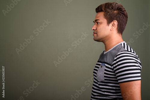 man, indian, adult, asian, background, man, mid, overweight, people, person, portrait, profile, shadow, shirt, shot, side, south, striped, studio, view, colours, fat, guy, indoor, light, male