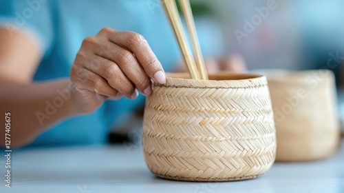 bamboo, basket, weaving, craft, artisan, vase, hand-made, traditional, skill, soft focus, culture, nature, artistry, craftsmanship, hand, design, material, tool, decorative, local, workshop, ethnic, sustainable, intricate, creative, texture, studio, creativity, home decor, soothing, warm colors, india, lifestyle