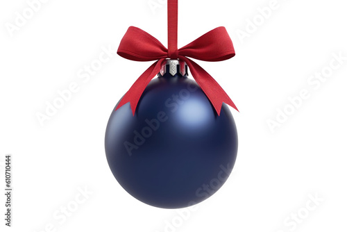 indigo Christmas ball with ribbon and a bow, isolated on background. Generative AI