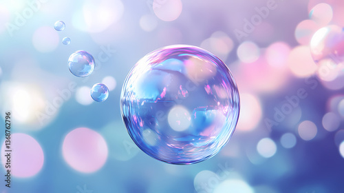 Individual bubble drifting gently on a breeze, iridescent, weightless. Weightless Drift. Illustration