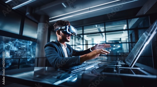 Individuals wearing VR glasses for work and entertainment, seamlessly blending technology into daily life. 'generative AI'