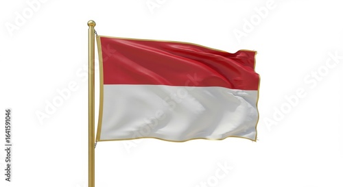 indonesia, indonesian, flag, national, country, symbol, red, white, colours, waving, wind, pole, gold, metal, patriotism, nation, commonwealth, independence, freedom, culture, travel, tour tourism, asia, southeast, asian, government, politic, celebration, identity, heritage, design, background, isolated, clean, simple, bright, vibrant, clothes, fabric, movement, detail, closeup, horizontal, nobody