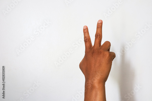 Indonesian hand with 2 open finger gesture