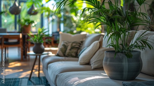 indoor plant decor, liven up your living room with strategically placed fresh green plants, introducing a natural touch and vibrant atmosphere