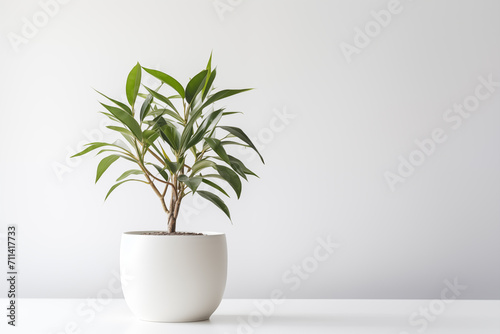 Indoor plant in a pot on the white background. Space for text. Generative AI
