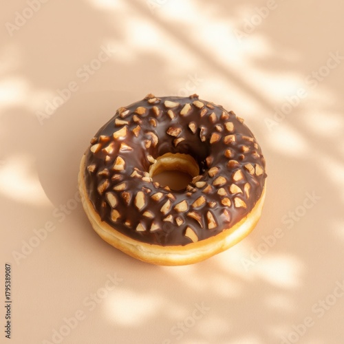 donut, donut, chocolate, glaze, nut, dessert, sweet, pastry, baked, delicious, food, treat, snack, confectionery, bakery, breakfast, cafes, hot drink, break, deliciously, epicure, tasty, freshness, temptation, indulgence, craving, brown, beige, background, isolated, studio, nobody, sunlight, shadow, simple, minimal