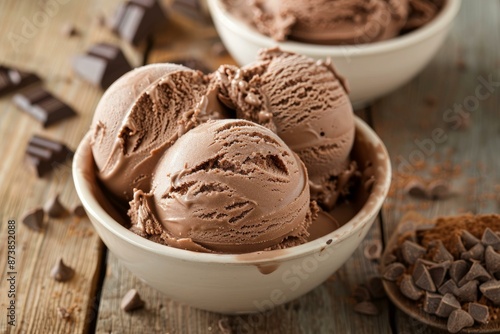 chocolate, ice, cream, dessert, sweet, glacé, treat, bowl, scoop, indulgence, creamy, dairy, cocoa, cold, confectionery, epicure, wooden, table, rustic, delicious, comfort, food, sugar, rush, chilled, brown, snack, serving, temptation, homemade, product, rich, favor, topping, chips, refreshing, summer, textured, background, photo, styling, close, up, artisanal, enjoyment, classic, luxury