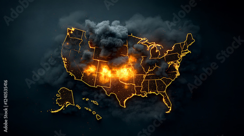 Industrial activity map of the us glowing economic zones darkened skies digital illustration urban environment aerial view economic insights