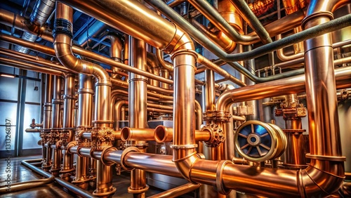 Industrial Copper Piping System in a Boiler Room - Detailed Product Photography