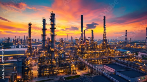 industry, sunset, factory, tower, smoke, machinery, energy, production, pollution, technology, infrastructure, manufacturing, skyline, urban, development, environment, power, refinery, oil, gas, illumination, metal, structure, transportation, process, equipment, labor, economy, resource, chemical, construction, engineering, investment, landscape, city, work, night, light, atmosphere, facility, activity, operation, manpower, system, control, efficiency, design