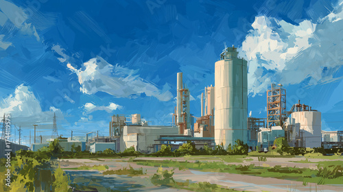 industrial landscape illustration - modern factory — clean energy production and sustainable development concept for technology presentations, industry websites