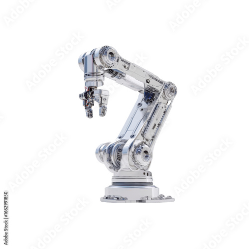 Industrial Robotic Arm Chrome Finish, Isolated on Black Background