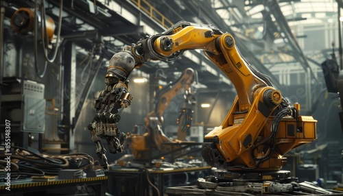 Industrial robotic arm in a modern manufacturing facility, symbolizing advanced technology and automation in the industry.