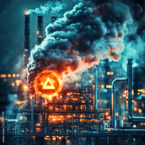 Industrial Scene with Dramatic Smoke and Fire Effects blurry backgrounds