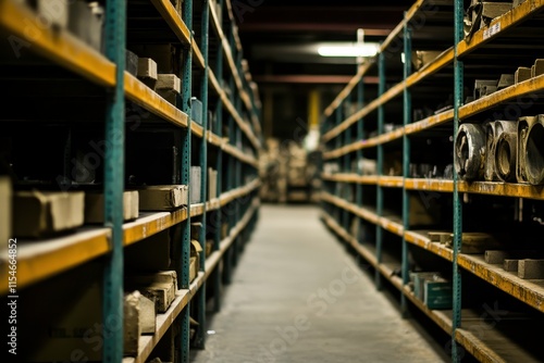 Industrial Shelving with Soft Lighting in Warehouse