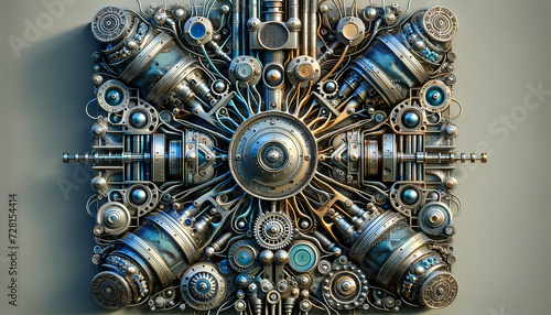 Industrial Steampunk Convolutional Neural Network: Aesthetic blend of gears, pipes, and layers showcasing the power of AI technology.