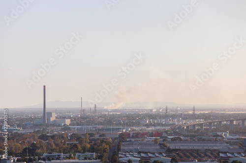 Industrial Suburbs Of Melbourne With Large Fire In Background