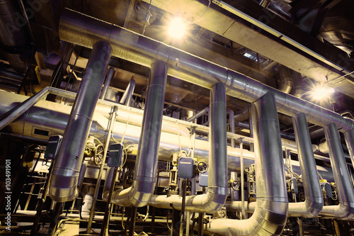 Industrial zone, Steel pipelines, valves, cables and walkways