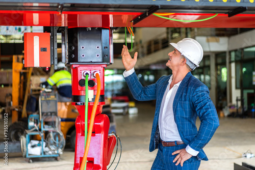 Industrious engineer man facility expertly work on robotic machinery, automation technology, modern manufacturing and engineering, innovation, control, factory, future of industrial automation