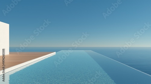Infinity Pool Retreat: A serene scene of an infinity pool seamlessly merging with the vast, azure ocean under a bright blue sky, symbolizing luxury and relaxation.