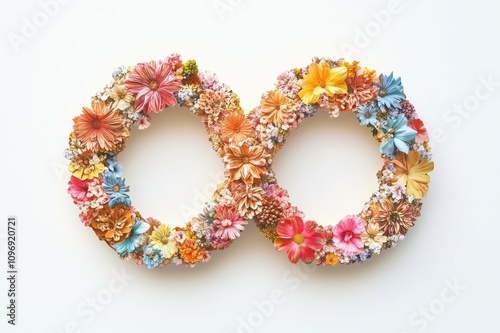 Infinity symbol composed of vibrant floral patterns for decorative design