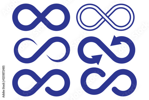 Infinity symbols. Set of infinity icons. Symbols of endless, unlimited, eternal. Vector illustration. Infinity shape icon set endless vector. Design elements for unlimited infinity, endless, eternity
