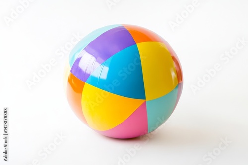 air, beach, bounce, catch, cheerful, colourful, float, fun, game, inflatable, large, light, outdoors, party, plastic, play, pool, rainbow, round, rubber, soft, stripes, summer, throw, toy