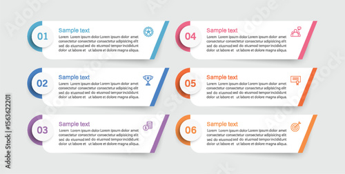 Infographic design business template with 6 options, steps. Can be used for workflow layout, diagram, annual report, web design