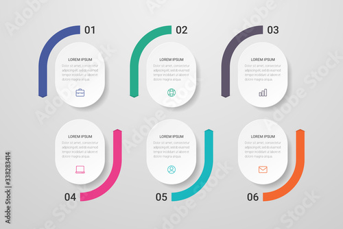 Infographic design with icons and 6 options or steps. Can be used for presentations, flow charts, web sites, banners, printed materials. Vector illustration.