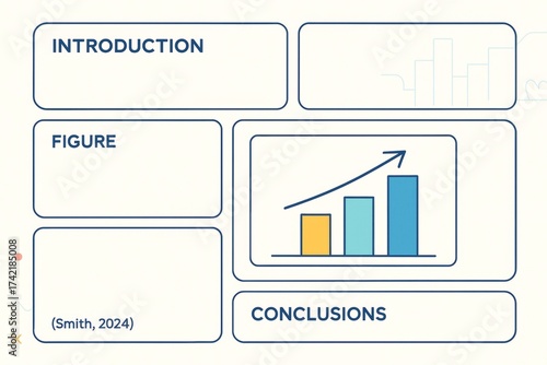 Infographic layout with labeled sections for introduction, figure, conclusions, and reference on a light background with clean chart design.. Ai generative
